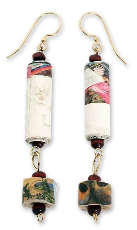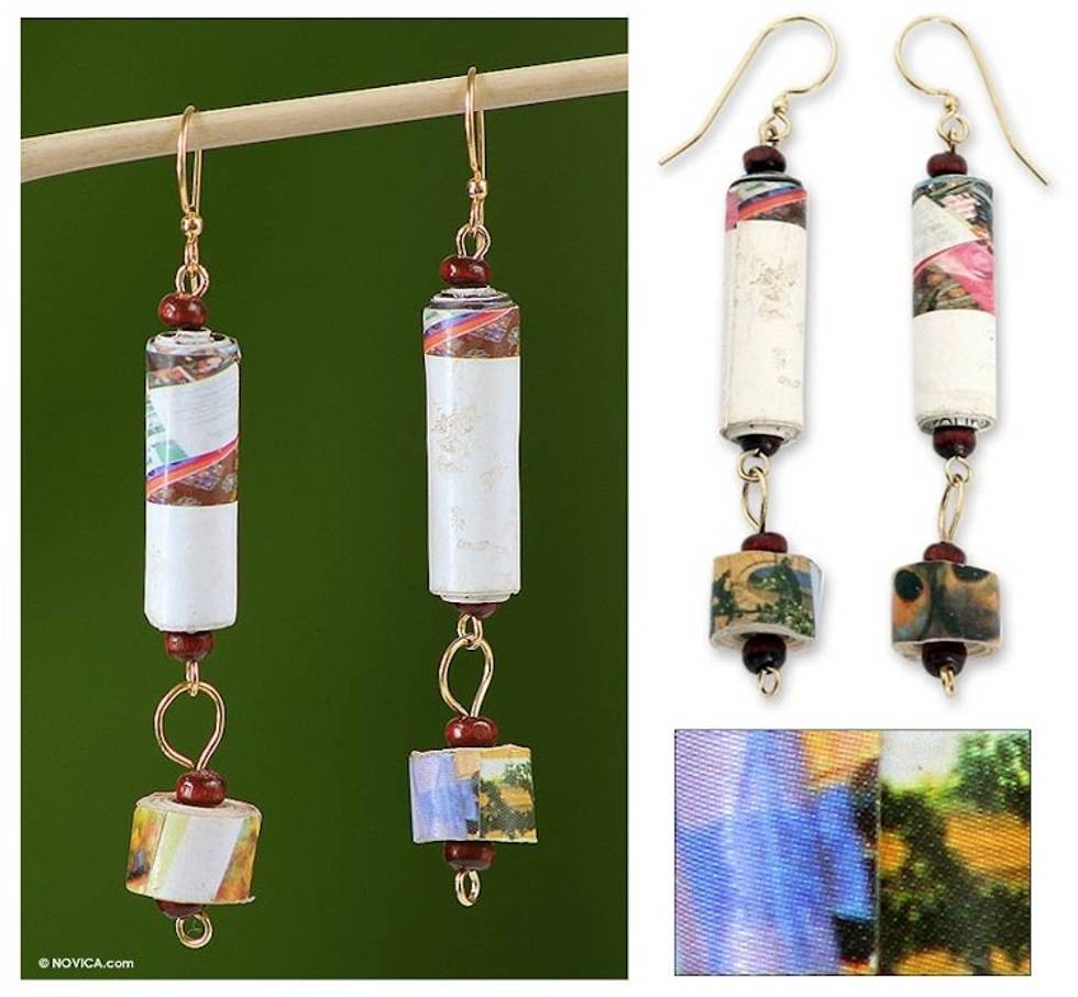 Handcrafted Recycled Paper Dangle Earrings 'Our Friendship' Item ID: 2671806708