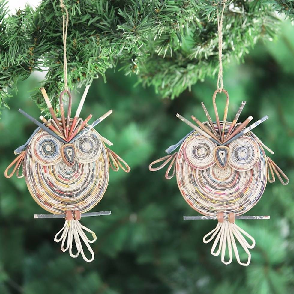 Handcrafted Recycled Paper Owl Ornaments from India Pair 'Wise Guardians' Item ID: 2669944132
