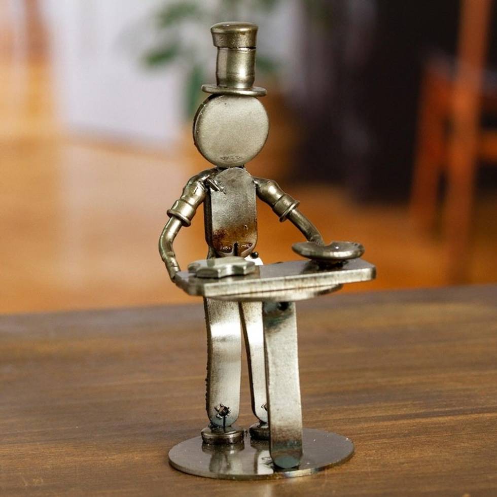 Handcrafted Recycled Scrap Metal Chef Statuette from Mexico 'Eco-Friendly Taste' Item ID: 2671807643