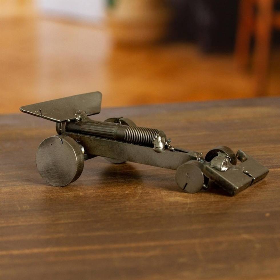 Handcrafted Recycled Scrap Metal Formula One Statuette 'Eco-Friendly Formula' Item ID: 2671807529