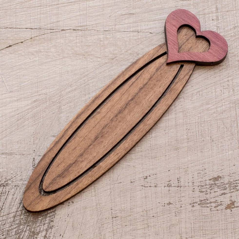 Handcrafted Recycled Teak Heart Theme Bookmark 'Book Lovers' Item ID: 2669933729