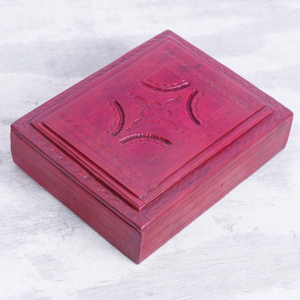 Handcrafted Red Leather and Sese Wood Jewelry Box from Ghana 'Passionate Secret' Item ID: 2671805497
