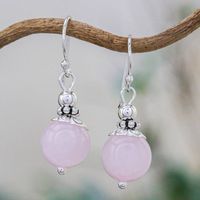 Handcrafted Rose Quartz and Sterling Silver Dangle Earrings 'Candy Cloud' Item ID: 2676651173
