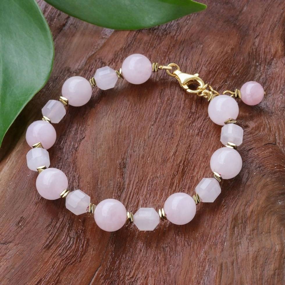 Handcrafted Rose Quartz Bracelet with Hematite 'Blushing' Item ID: 2671799689