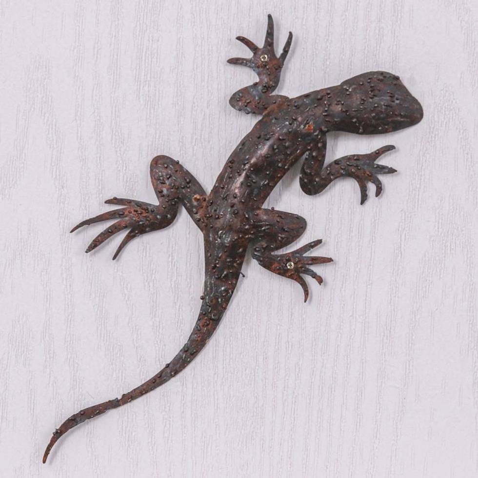 Handcrafted Salamander-Shaped Brown Iron Wall Art 'Sylvan Salamander' Item ID: 2671796710