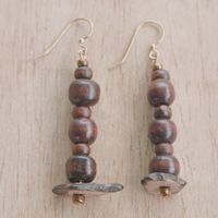 Handcrafted Sese Wood and Coconut Beaded Dangle Earrings 'Forest Blessing' Item ID: 2671804991