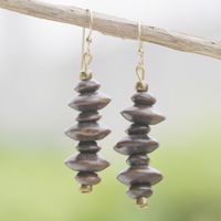 Handcrafted Sese Wood Beaded Dangle Earrings from Ghana 'Forest Milestones' Item ID: 2671803967