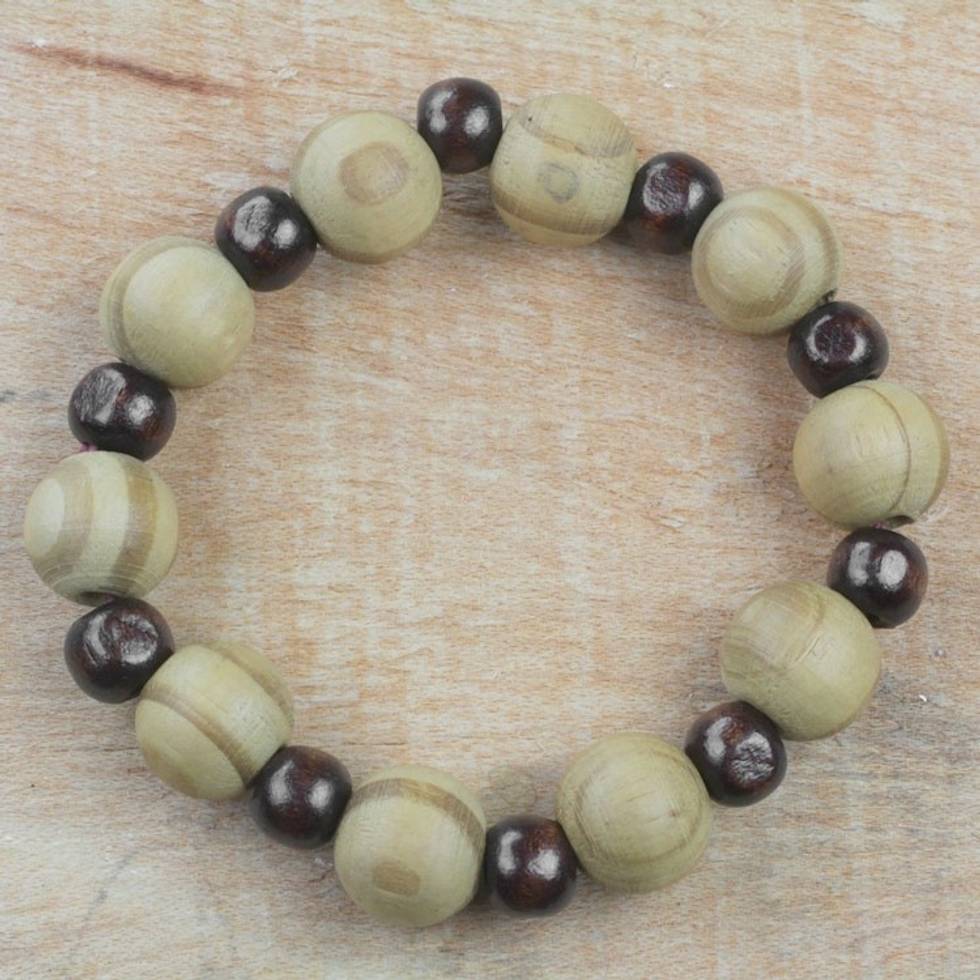 Handcrafted Sese Wood Beaded Stretch Bracelet from Ghana 'Circle of Beauty' Item ID: 2671803861