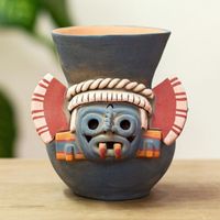 Handcrafted Signed Ceramic Aztec Tlaloc Replica Vessel 'Lord of the Rainstorm' Item ID: 2671808362