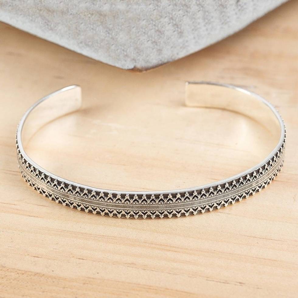 Handcrafted Signed Fine Silver Cuff Bracelet 6.5 Inch 'Moorish Mexico' Item ID: 2671640149