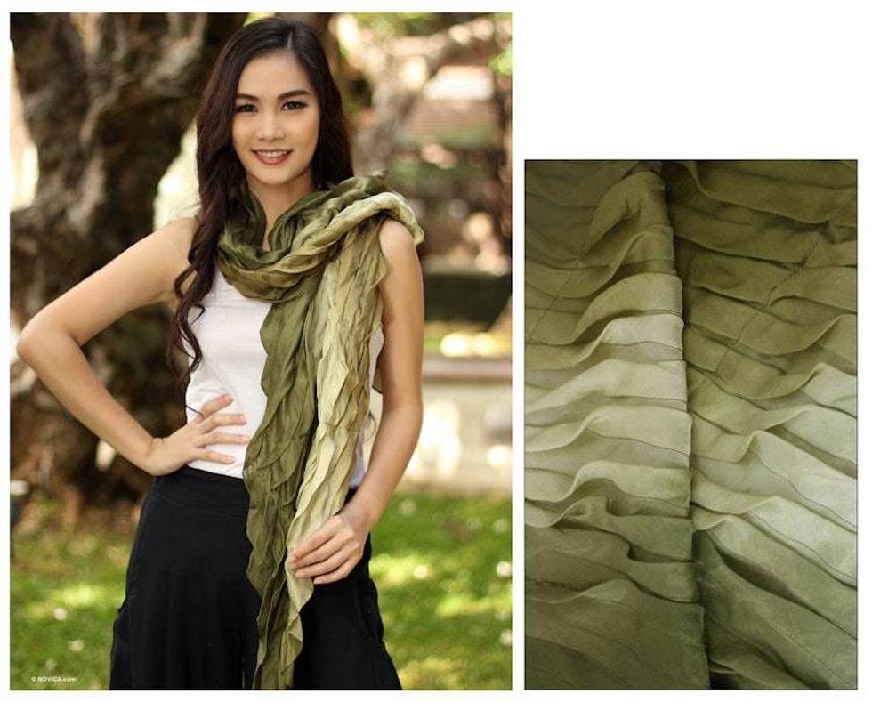 Handcrafted Silk Scarf from Thailand 'Evolving Olive' Item ID: 2676653056