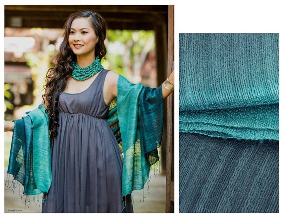 Handcrafted Silk Shawl 'Bold Teal' Item ID: 2669926621