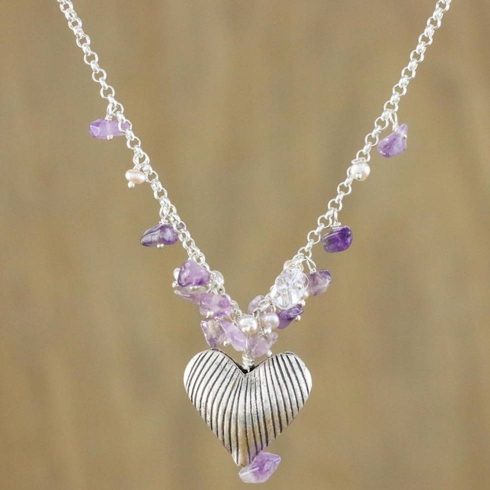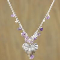 Handcrafted Silver and Amethyst Heart Necklace 'The Secret of Love' Item ID: 2671802687