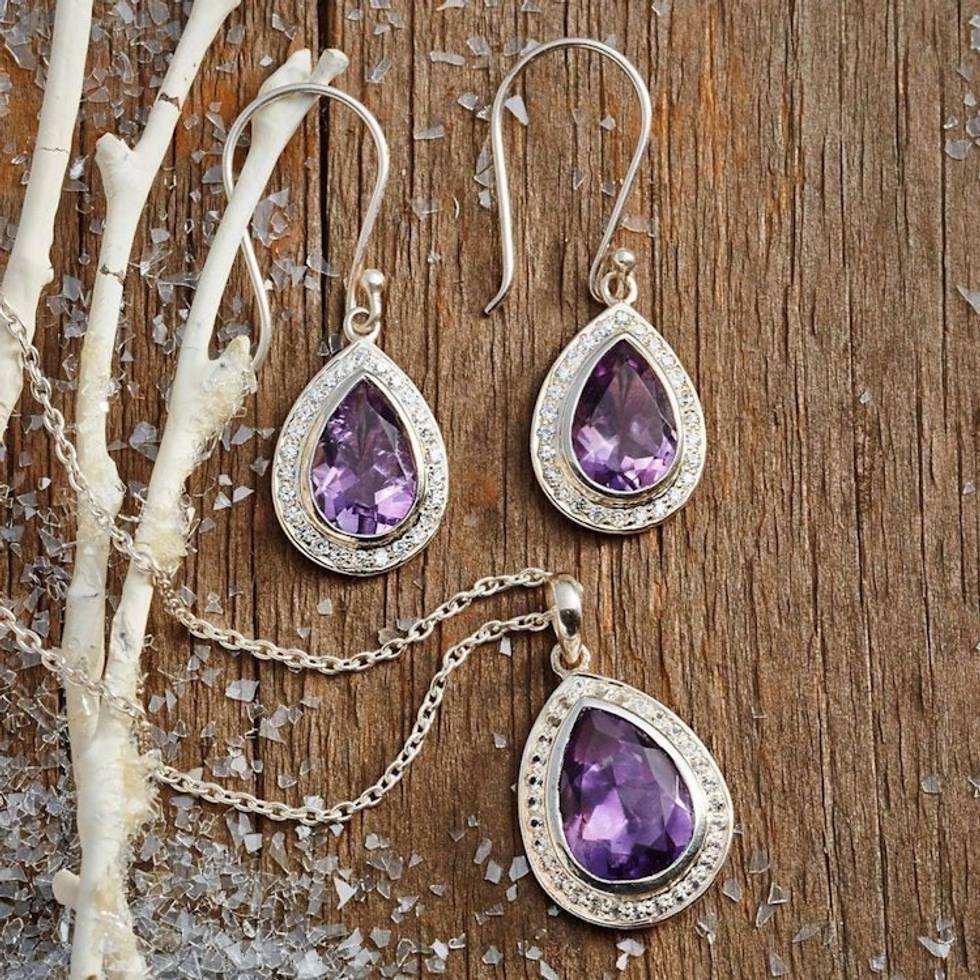 Handcrafted Silver and Amethyst Pendant Necklace 'Mughal Mystique' Item ID: 2671652090