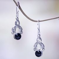 Handcrafted Silver and Onyx Dangle Earrings from Bali 'Midnight Embrace' Item ID: 2671702440