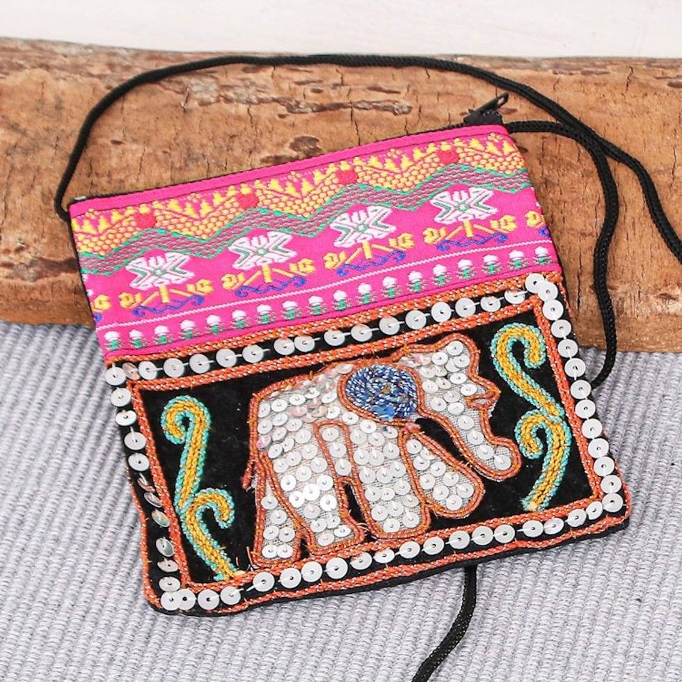 Handcrafted Small Shoulder Bag 'Elephant Glam' Item ID: 2669897389
