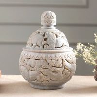 Handcrafted Soapstone Candy Jar from India 'Elephant Harmony' Item ID: 2676664234