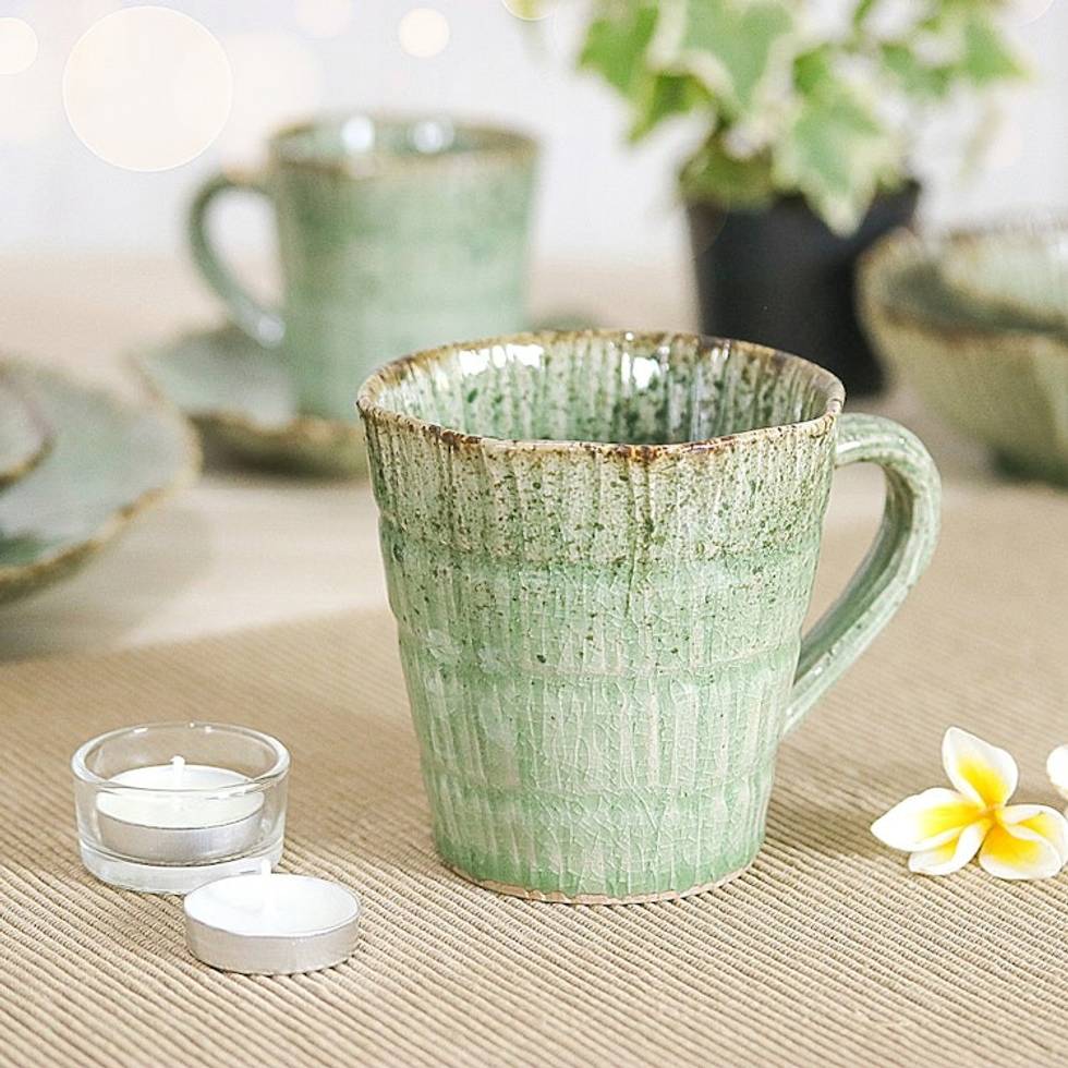 Handcrafted Speckled Green Celadon Ceramic Mug 'Green Trend' Item ID: 2671796952