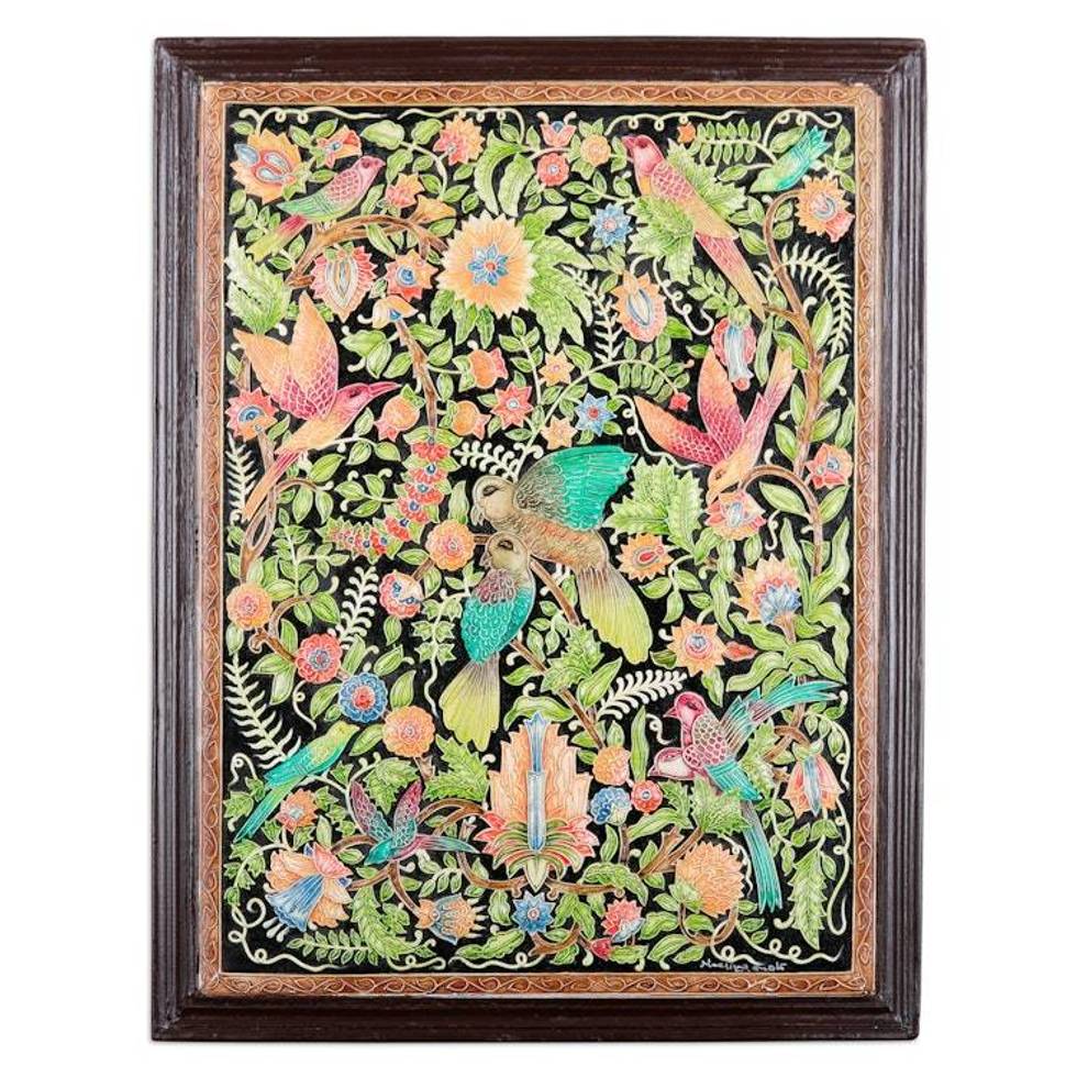 Handcrafted Spring-Themed Framed Marble Wall Art from India 'Spring Birds' Item ID: 2675247081