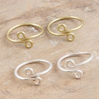 Handcrafted Sterling Silver and Brass Toe Rings Set of 4 'Here and There' Item ID: 2671788008