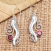 Handcrafted Sterling Silver and Garnet Dangle Earrings 'Favorite Party' Item ID: 2671746260