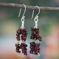 Handcrafted Sterling Silver Beaded Garnet Earrings 'Rejoice' Item ID: 2671794251