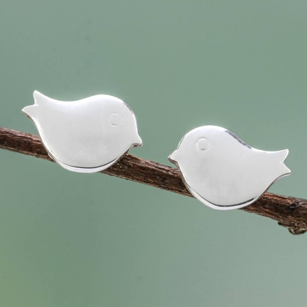 Handcrafted Sterling Silver Bird Stud Earrings from Thailand 'Little Birds' Item ID: 2669926477