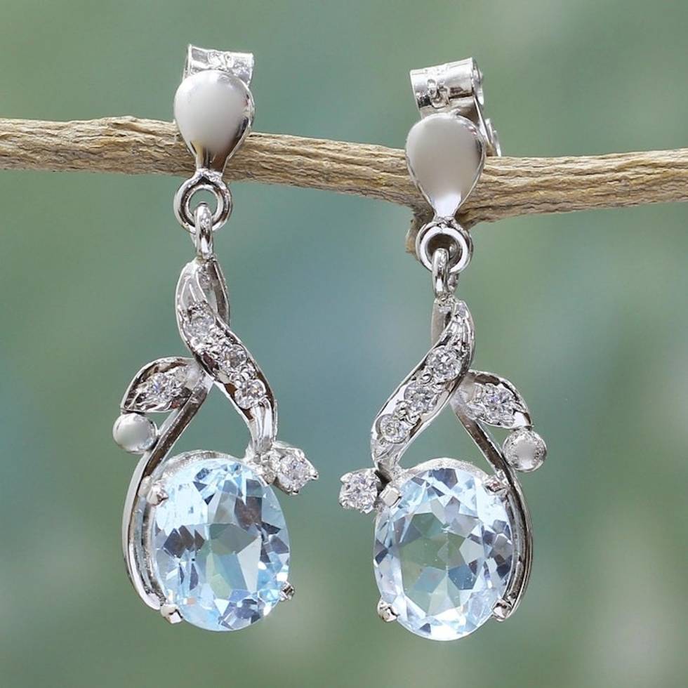 Handcrafted Sterling Silver Blue Topaz Earring Floral Jewelr 'Dazzling Dew' Item ID: 2671794627