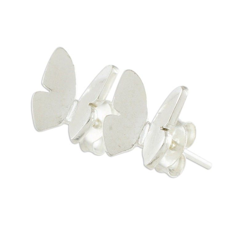 Handcrafted Sterling Silver Butterfly Button Earrings 'Butterfly Repose' Item ID: 2671777585