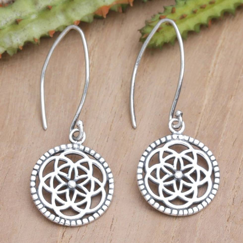 Handcrafted Sterling Silver Chakra Dangle Earrings 'Cosmic Chakras' Item ID: 2671762905