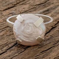 Handcrafted Sterling Silver Cultured Pearl Solitaire Ring 'Decadent' Item ID: 2669933930