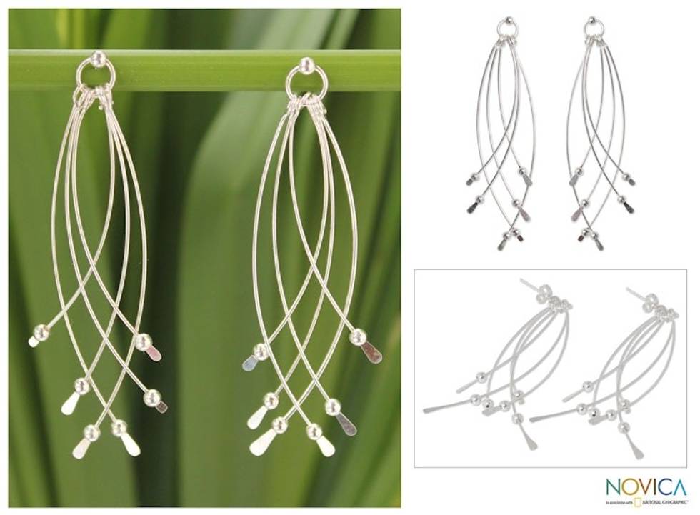 Handcrafted Sterling Silver Dangle Earrings 'Early Rain' Item ID: 2669930464