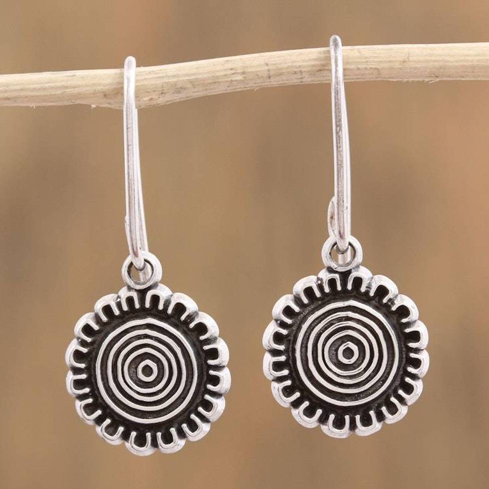 Handcrafted Sterling Silver Dangle Earrings from Mexico 'Sun over Mexico' Item ID: 2676646745
