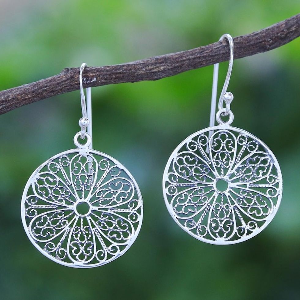 Handcrafted Sterling Silver Dangle Earrings from Thailand 'Looking Glass' Item ID: 2671800379