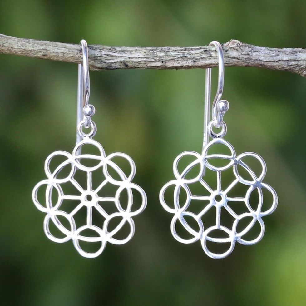 Handcrafted Sterling Silver Dangle Earrings from Thailand 'Magic Flowers' Item ID: 2671800870