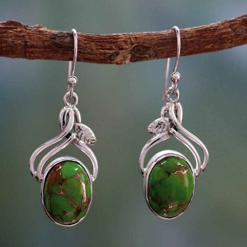 Handcrafted Sterling Silver Earrings from India 'Green Dew' Item ID: 2671794418