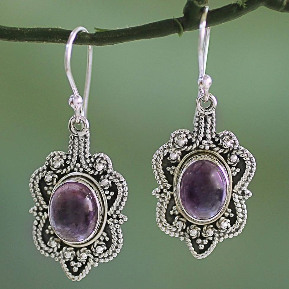Handcrafted Sterling Silver Earrings with Amethyst 'Intricate Embrace' Item ID: 2671793706