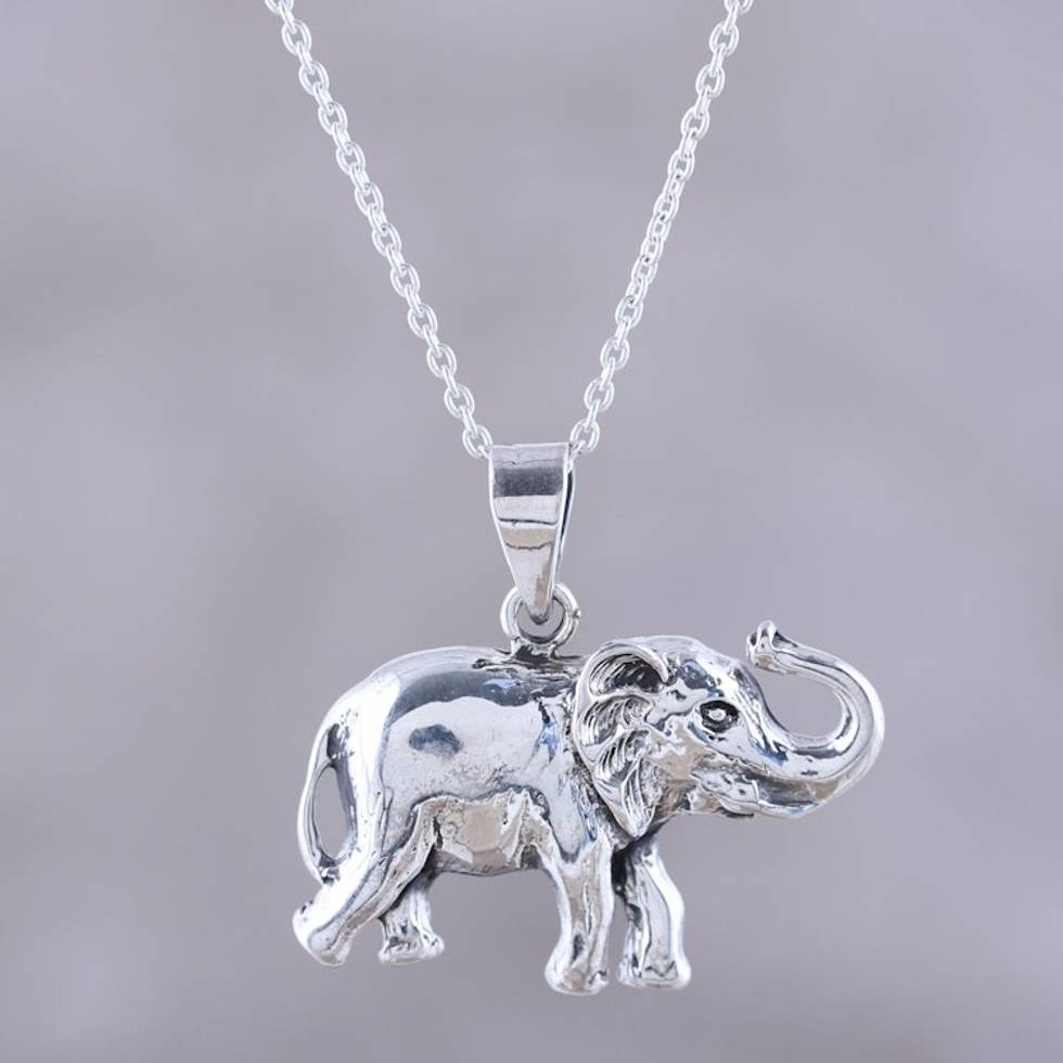 Handcrafted Sterling Silver Elephant Pendant Necklace 'Gleeful Elephant' Item ID: 2669955403
