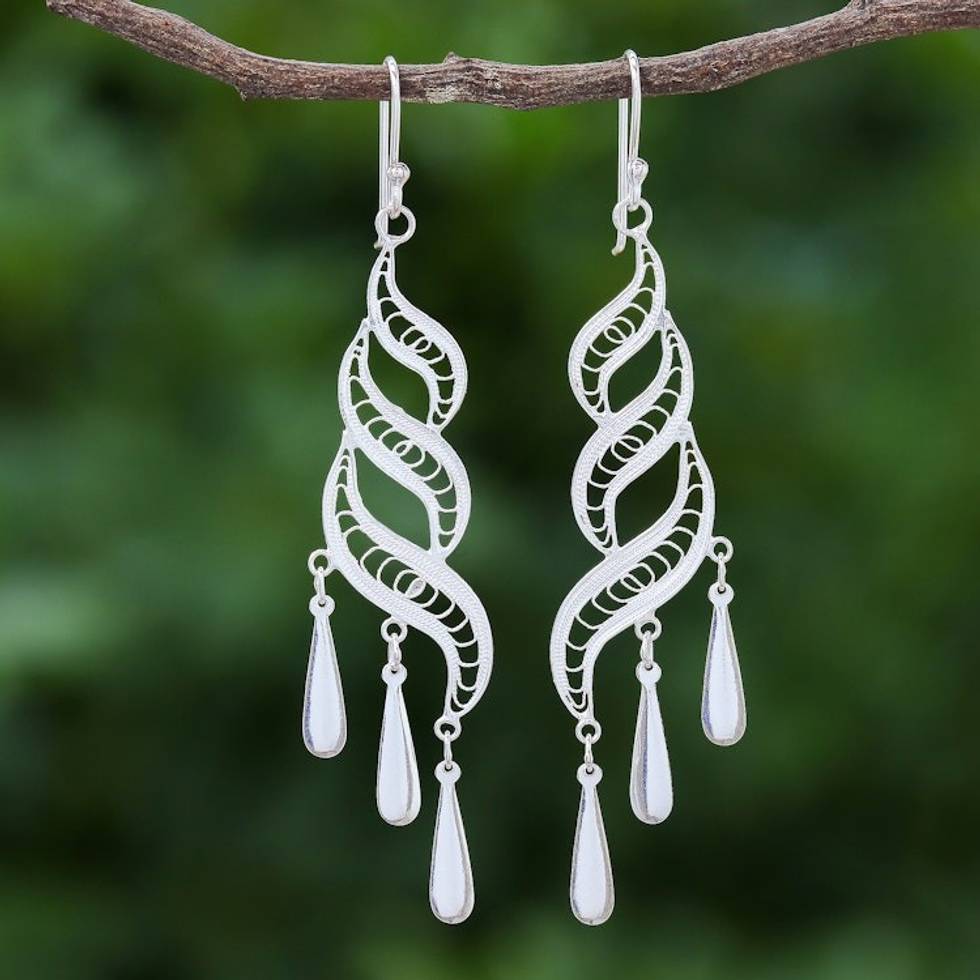 Handcrafted Sterling Silver Filigree Dangle Earrings 'Three Graces' Item ID: 2669929603