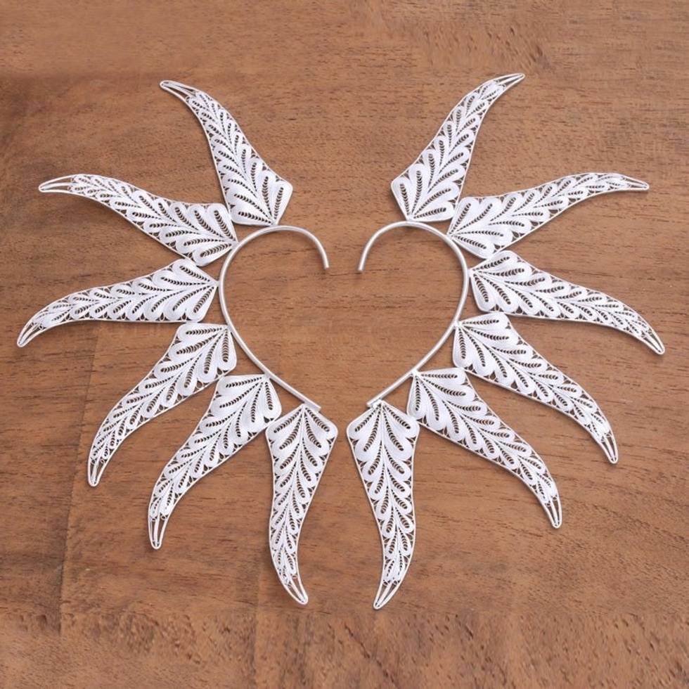 Handcrafted Sterling Silver Filigree Leaf Ear Cuffs 'Fern Leaf' Item ID: 2671736054