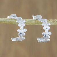 Handcrafted Sterling Silver Floral Half-Hoop Earrings 'Wondrous Blossoms' Item ID: 2671801337
