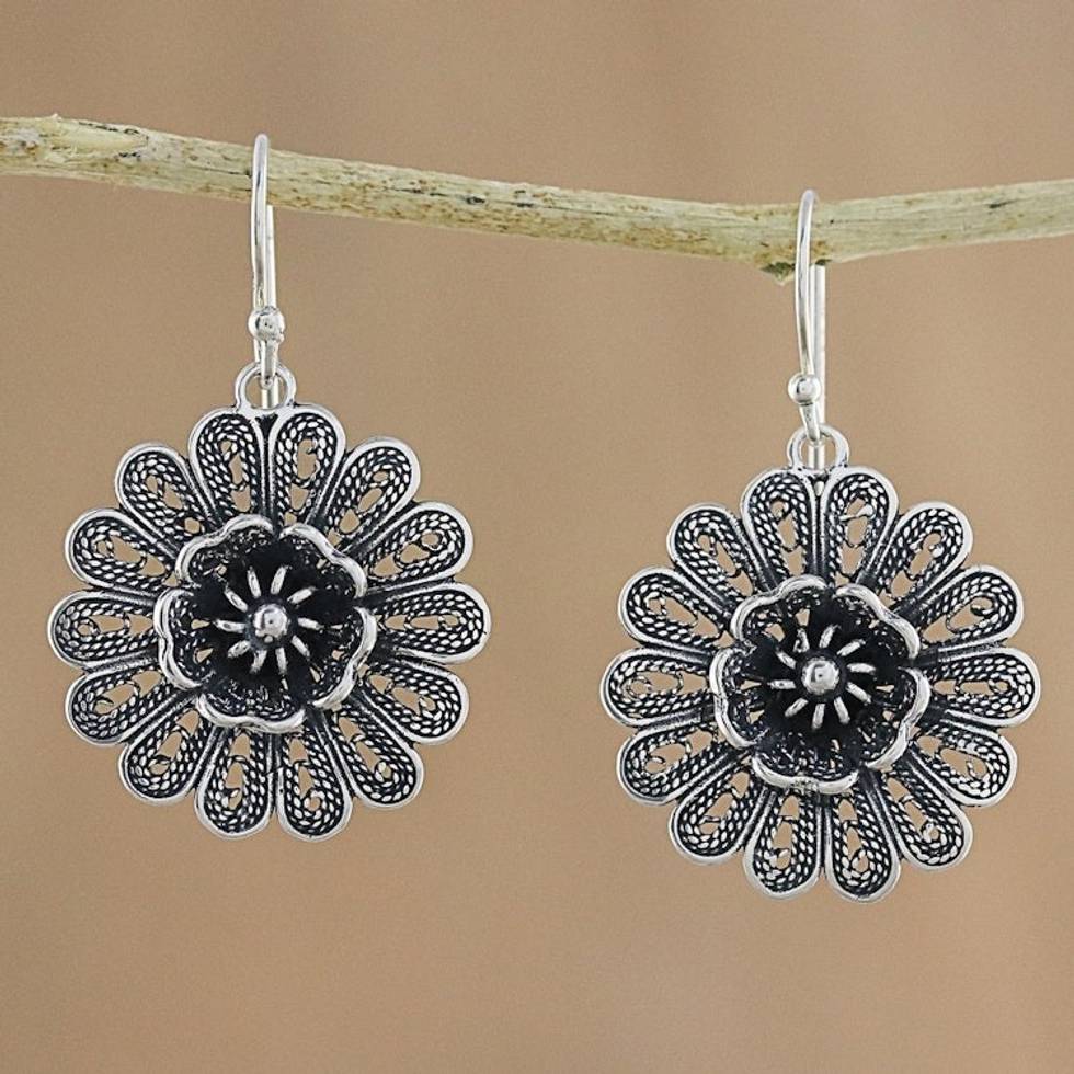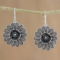 Handcrafted Sterling Silver Flower Dangle Earrings 'Intricate Petals' Item ID: 2671801028