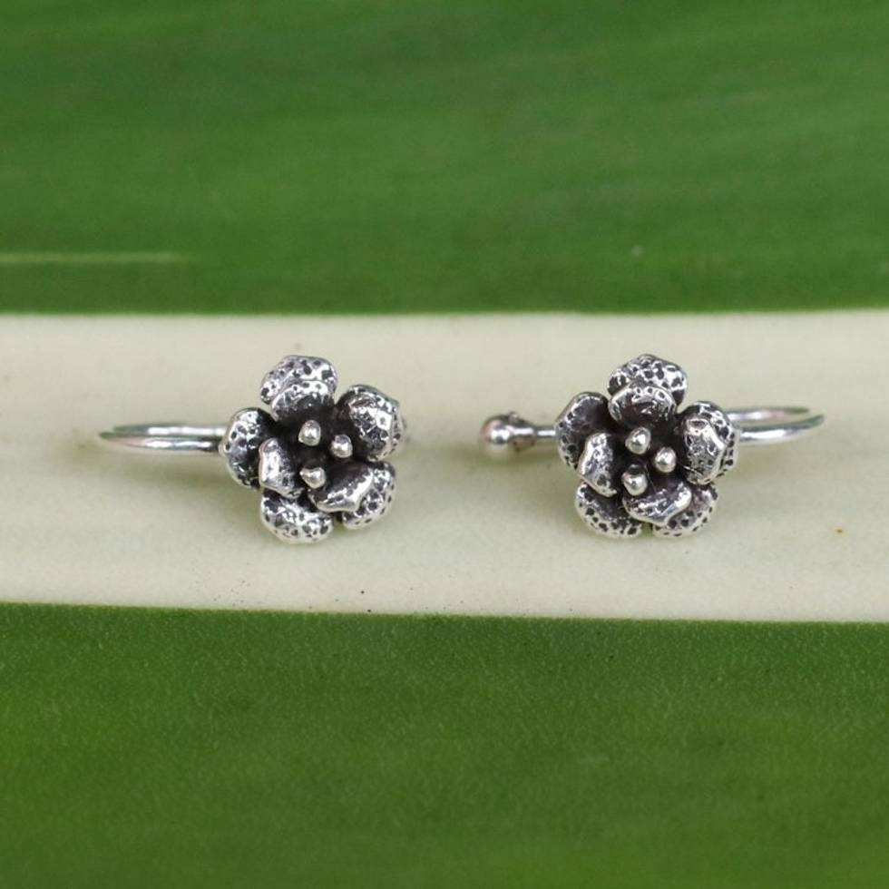 Handcrafted Sterling Silver Flower Ear Cuffs from Thailand 'Garden Blossoms' Item ID: 2669927249
