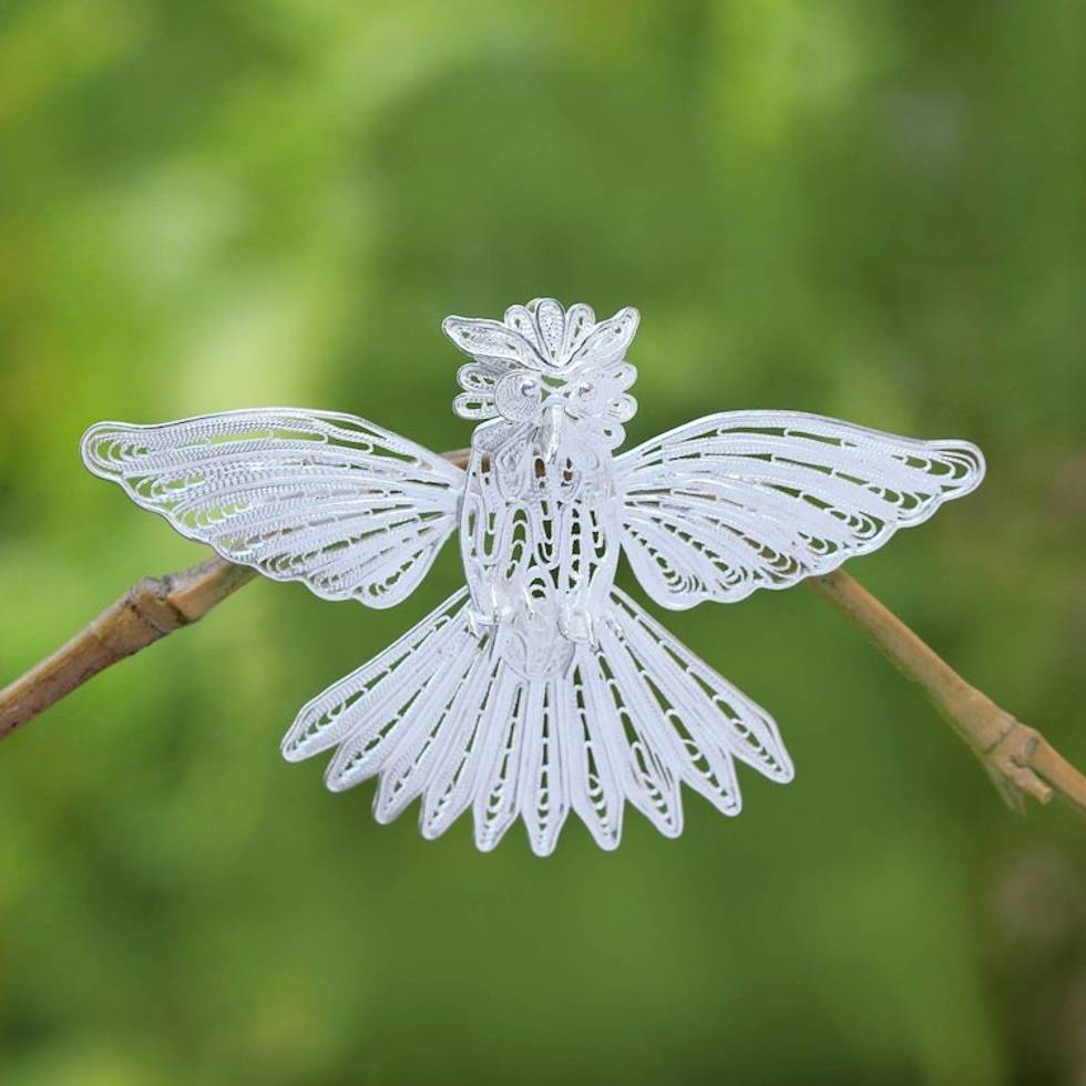 Handcrafted Sterling Silver Garuda Filigree Bird Brooch 'Little Garuda' Item ID: 2671735373