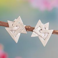 Handcrafted Sterling Silver Geometric Button Earrings 'Triology' Item ID: 2671819217