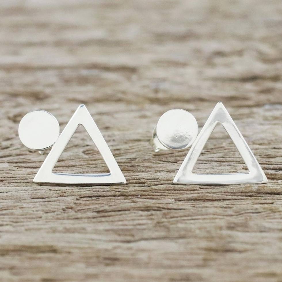 Handcrafted Sterling Silver Geometric Button Earrings 'Geometric Simplicity' Item ID: 2671801009