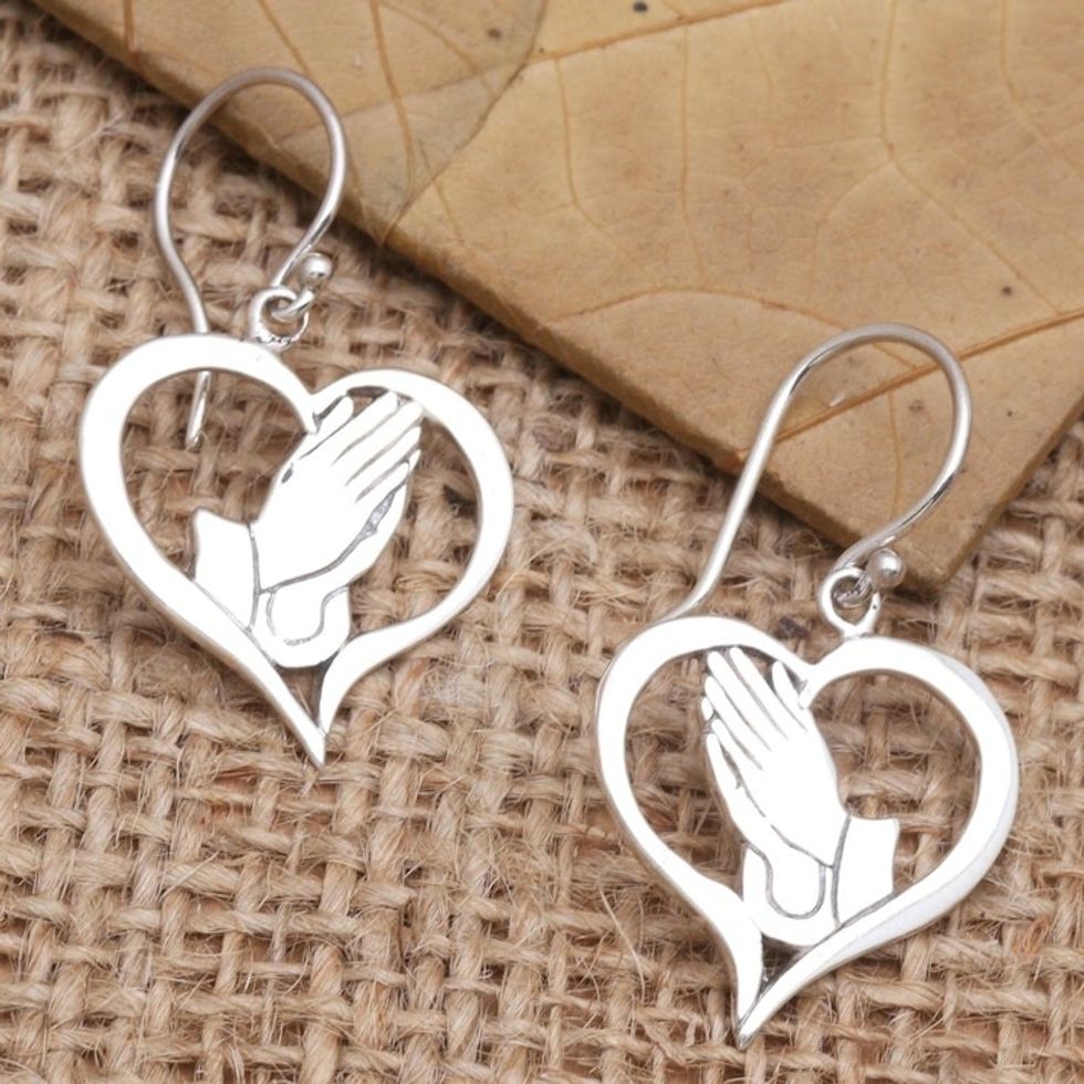 Handcrafted Sterling Silver Heart Earrings 'Empire of Love' Item ID: 2671747443