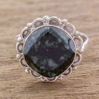 Handcrafted Sterling Silver Jade Cocktail Ring 'Dark Forest Moon' Item ID: 2671626514
