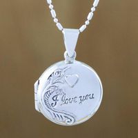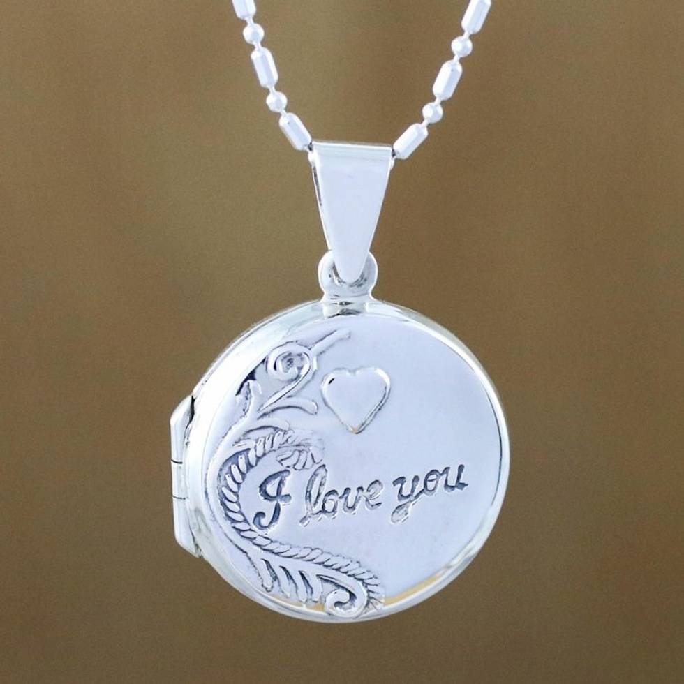 Handcrafted Sterling Silver Locket Necklace from Thailand 'Words of Love' Item ID: 2671801178