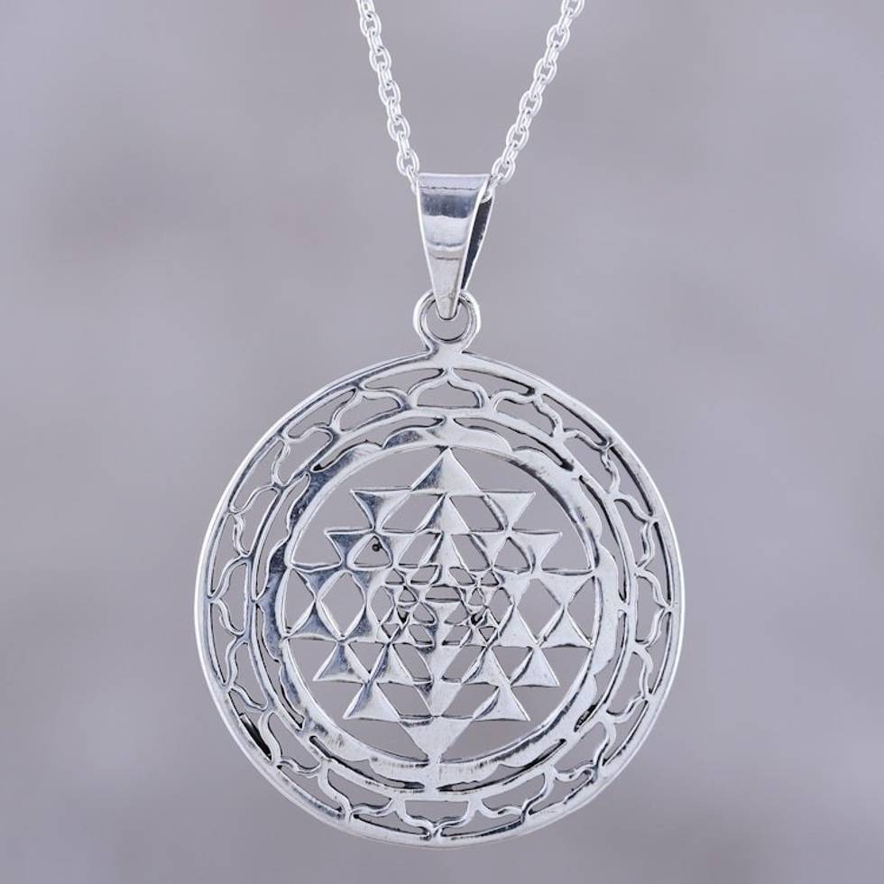 Handcrafted Sterling Silver Om Visualized Pendant Necklace 'Om in Symmetry' Item ID: 2669924421